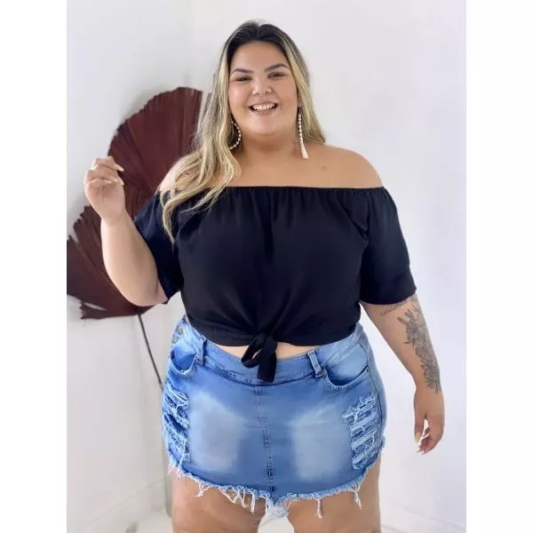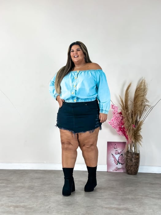 Short Saia Jeans Plus Size