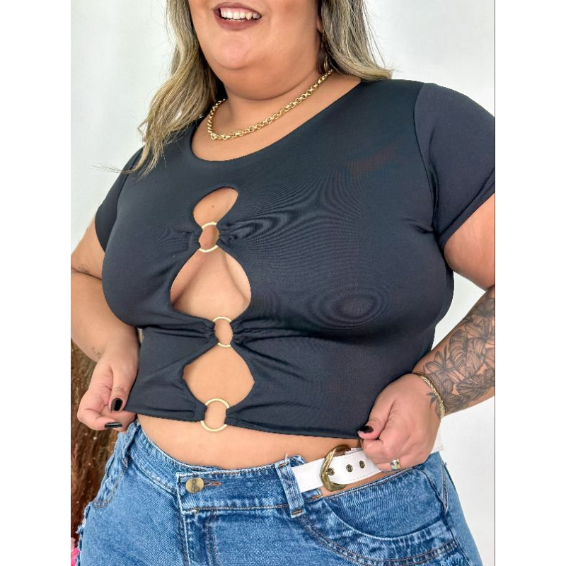 Cropped Suplex com Argolas e Decote no Busto