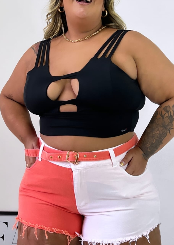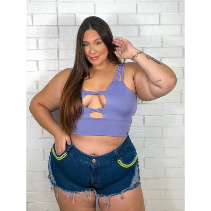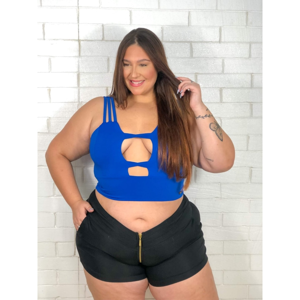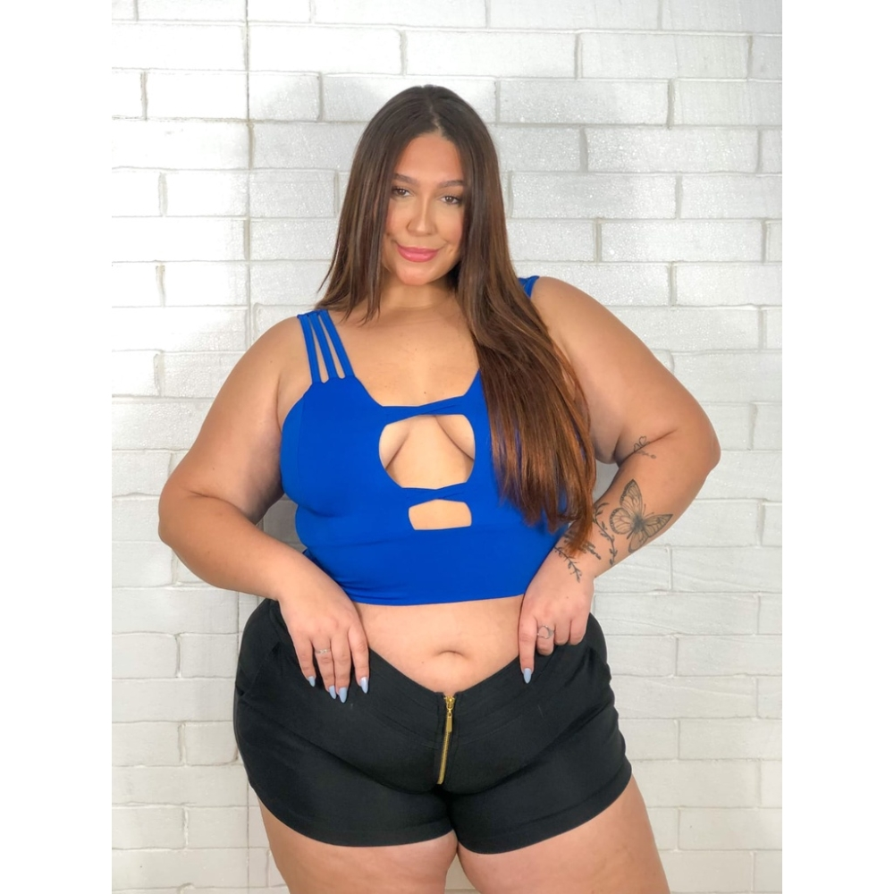Cropped com Abertura no Busto em Tecido Suplex Plus Size.