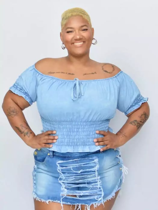 MODELO JEANS COM ELASTECA MODELO VESTE TAMANHO XGTAMANHOS E MEDIDASGG 44/46 - BUSTO 148 CM / CINTURA 136 CM / COMP DO CROPPED 39 CM /LARGURA DA MANGA 52 CM / COMP DA MANGA 21 CM / PUNHO DA MANGA 45 CMXG 48/50 - BUSTO 156 CM / CINTURA 144 CM / COMP DO CROPPED 39 CM/ LARGURA DA MANGA 52 CM / COMP DA MANGA 21 CM/ PUNHO DA MANGA 45 CMXL 52/54 - BUSTO 164 CM / CINTURA 152 CM / COMP DO CROPPED 39 CM / LARGURA DA MANGA 52 CM / COMP DA MANGA 21 CM/ PUNHO DA MANGA 45 CM