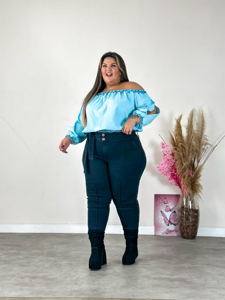 - Jeans Premium: Feita com jeans de alto padrão, essa calça não laceia e mantém sua forma.