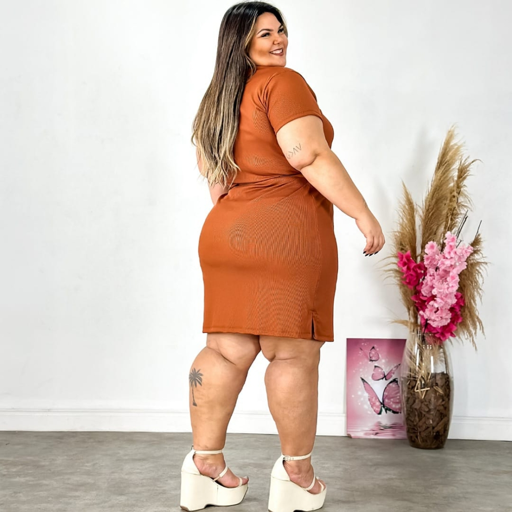 Seja para um passeio casual, um jantar especial ou um evento descontraído, o Vestido Midi Ribana Plus Size com Manga Curta é a escolha versátil que você precisa no seu guarda-roupa.