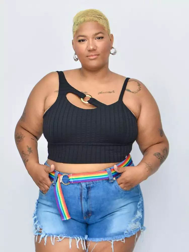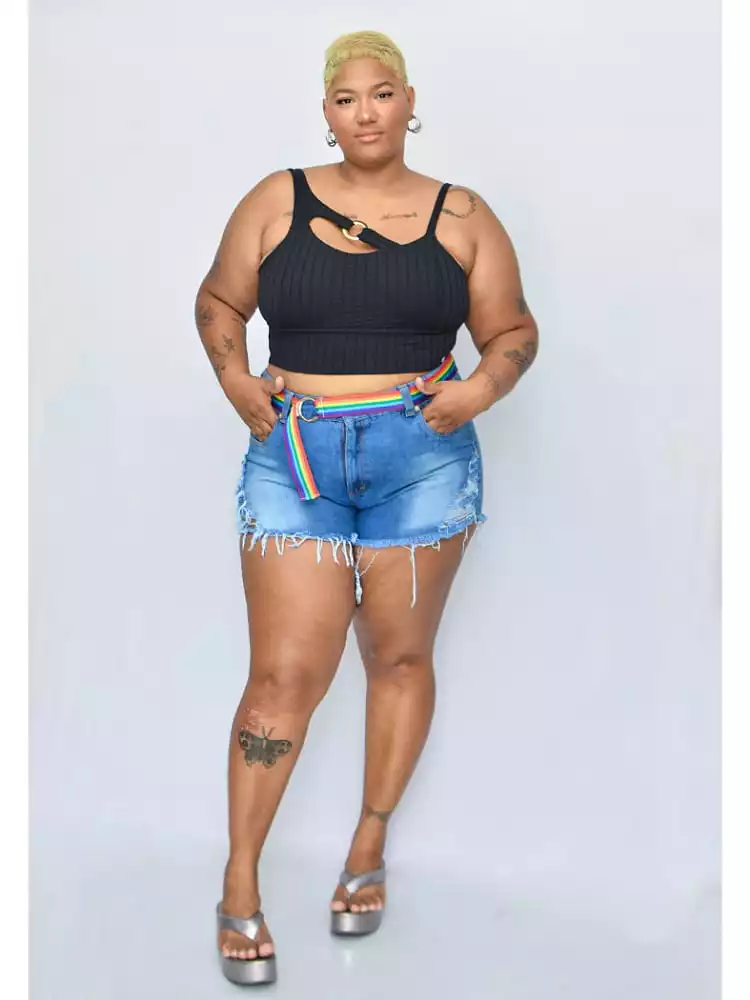 Apresentamos nosso Short Jeans com Cinto Colorido, uma peça cheia de estilo e personalidade! Com uma lavagem Stone Used Sky, o short tem um visual moderno e despojado. Inclui cortes que dão um toque extra de charme. Disponível nos tamanhos 48 ao 62, é perfeito para todos os tipos de corpo. Na foto, a modelo veste o tamanho 52, mostrando como essa peça se ajusta perfeitamente e realça o look.