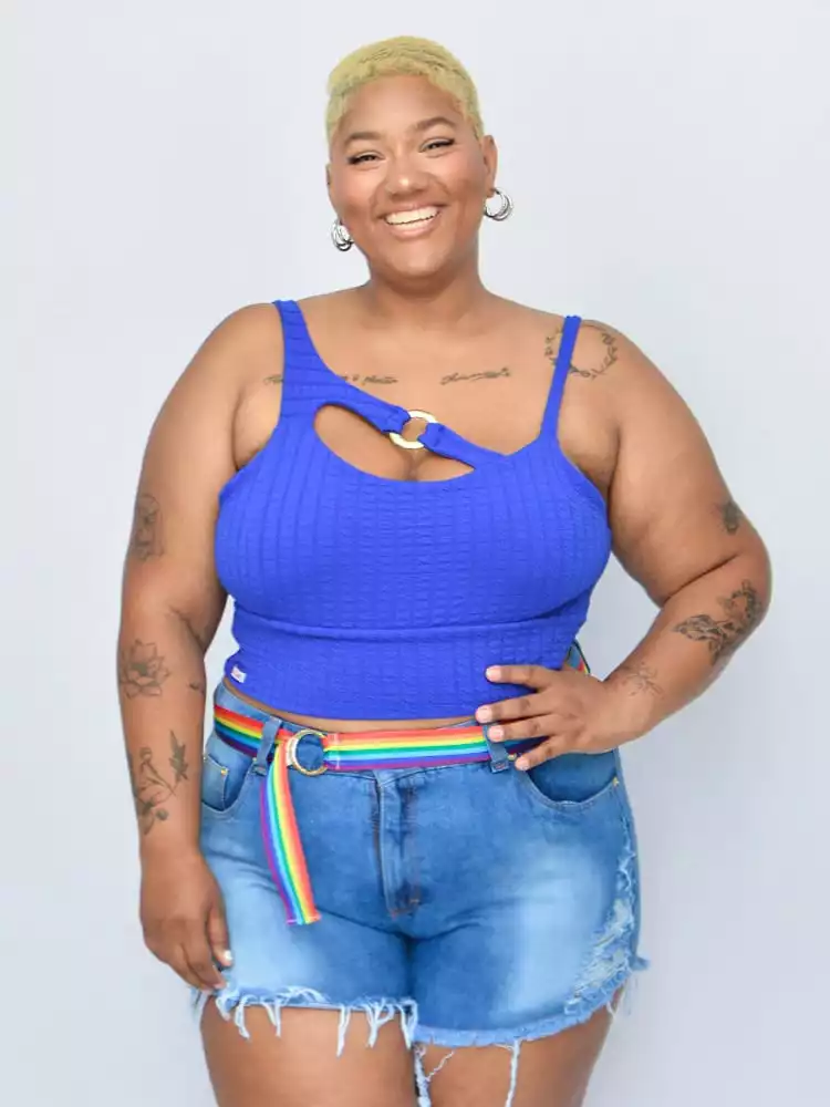 O Cropped Geiza é a escolha perfeita para quem busca estilo e conforto em uma única peça. Com alças elegantes e uma sofisticada argola no busto, este cropped destaca-se por seu design moderno e atraente.