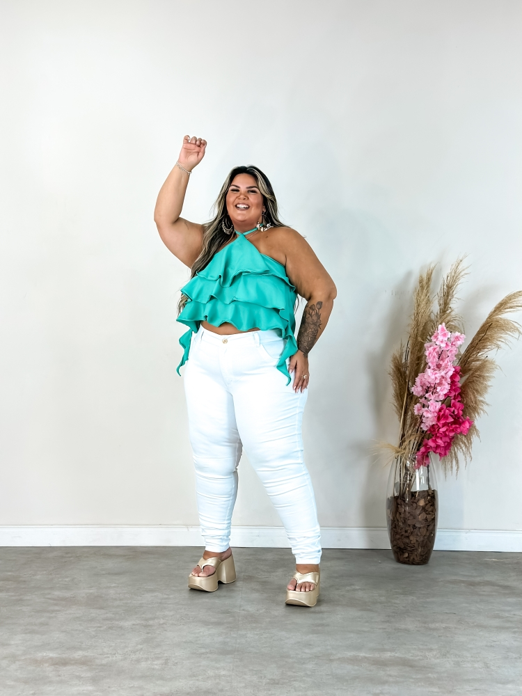Acalça branca de brim plus sizeé confeccionada em 97%algodão e 3% elastanoe é especialmente indicada para profissionais que trabalham em clínicas e na área da saúde. Aqui estão os detalhes do produto: