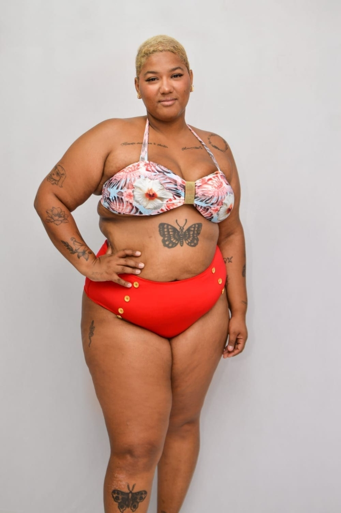Top Moda Praia Plus Size - Tomara que Caia com Detalhe Dourado
