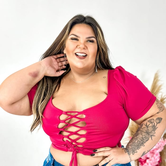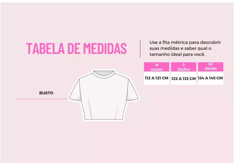 TECIDO EM SUPLEX COM BASTANTE ELASTICIDADE!MODELO SEM BOJOTAMANHOS :48 AO 58M - 48/50 / BUSTO - 112 A 121 CMG - 52/54 / BUSTO - 122 A 133 CMGG - 56/58 / BUSTO - 134 A 145 CMA MODELO VESTE O TAMANHO G