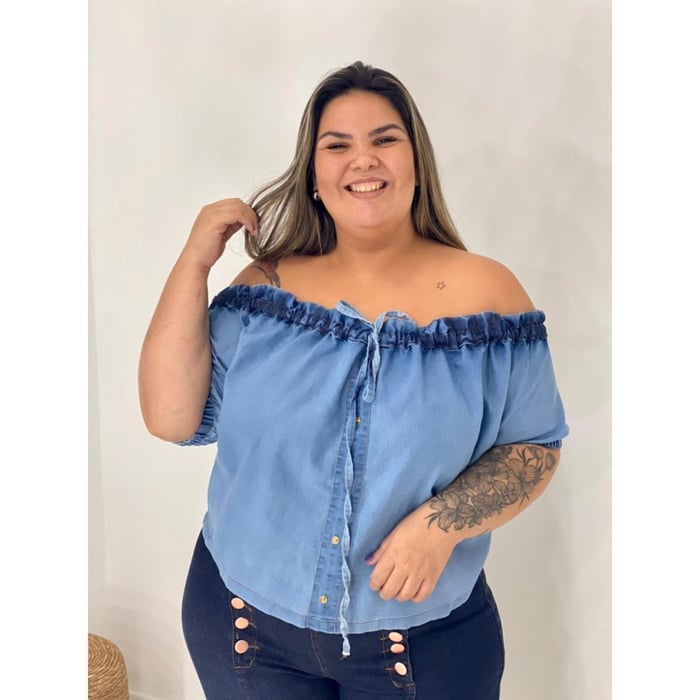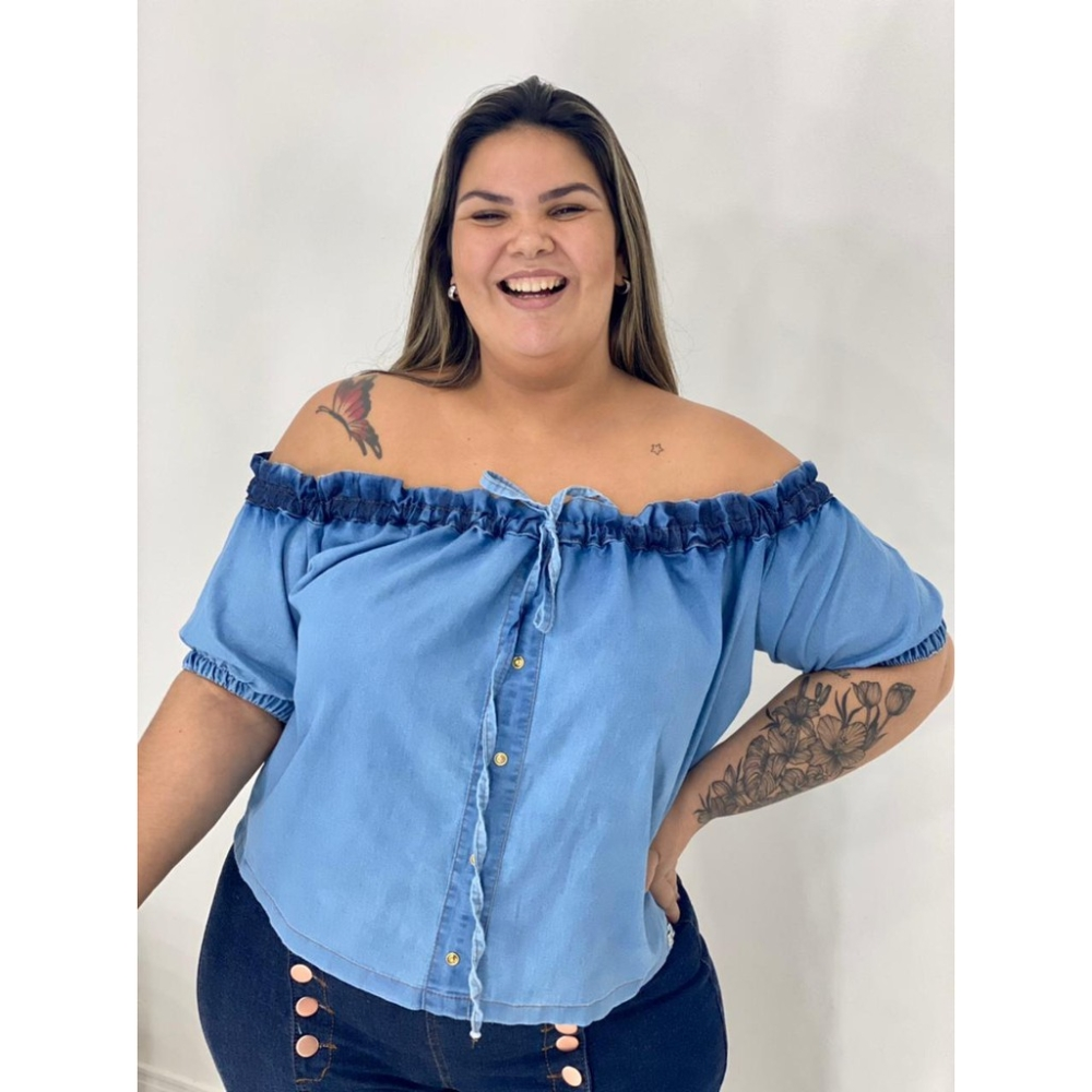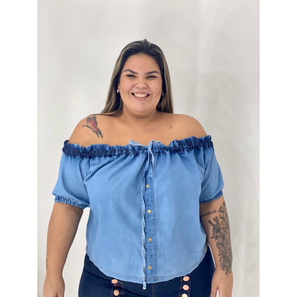 cropped ciganinha jeans plus size tamanhos do 46 AO 60JEANS SEM STRETCH COM ELÁSTICO NOS BRAÇOS E CADARÇO REGULÁVEL NO OMBRO, TECIDA JEANS 100% ALGODÃO SUPER CONFORTAVEL, O CROPPED É O TERMO USADO PARA AS BLUSAS FEMININA QUE POSSUEM O ESTILO ( CORTADO ) COM COMPRIMENTO REDUZIDO. NORMALMENTE DEIXANDO Á AMOSTRA UMA PARTE DO ABDOMEM, O CROPPED JEANS É UMA PEÇA QUE REMETE A UM VISUAL JOVEM, MAS QUE PODE SER MUITO ELEGANTE QUANDO COMBINADO COM AS PEÇAS CERTAS.TAMANHOS:GG - 46/48XG - 50/52XL - 54/56EG- 58/60A MODELO VESTE O TAMANHO XG0,57 CM DE COMPRIMENTO