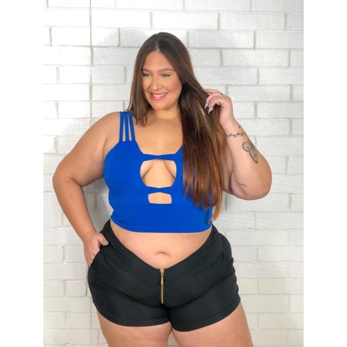 1. Cropped com Abertura no Busto em Tecido Suplex Plus Size.