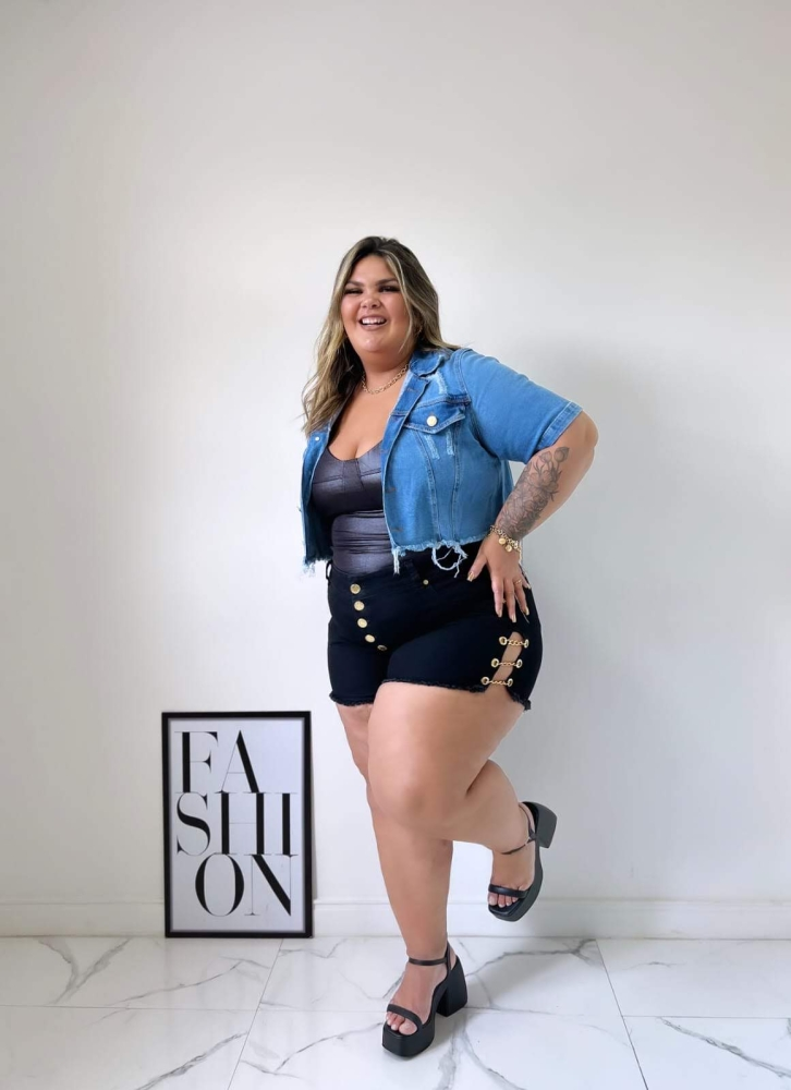 • Modelo: Cropped jeans com manga curta