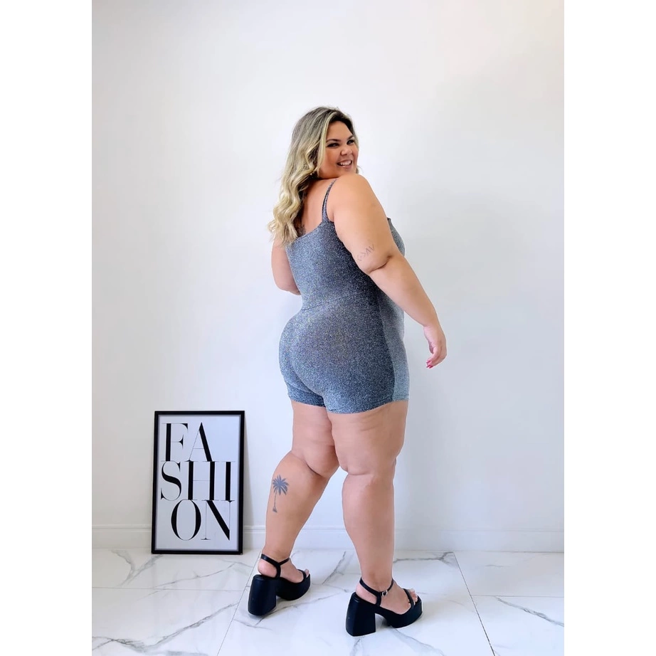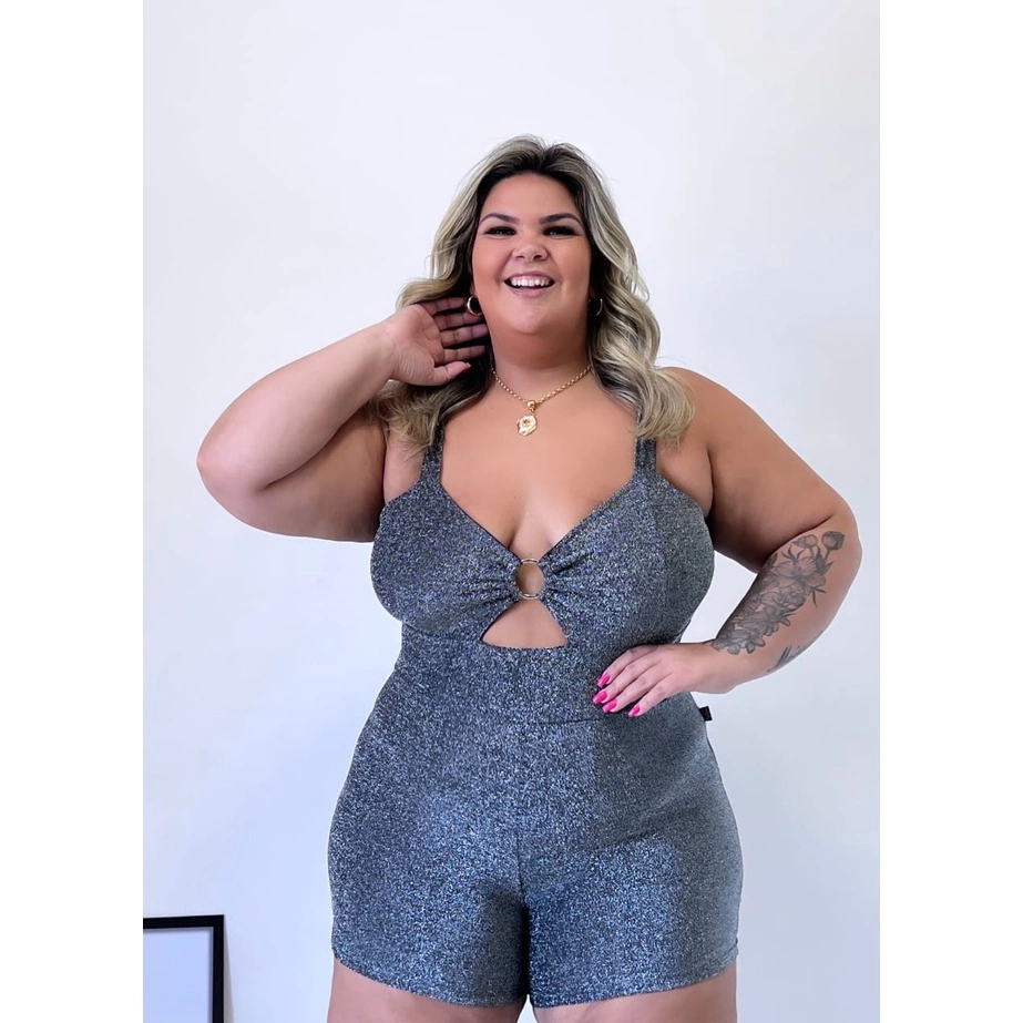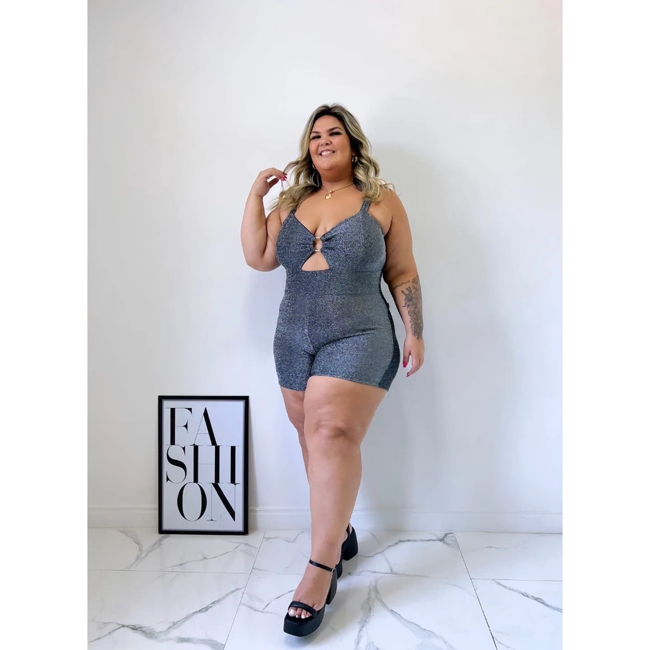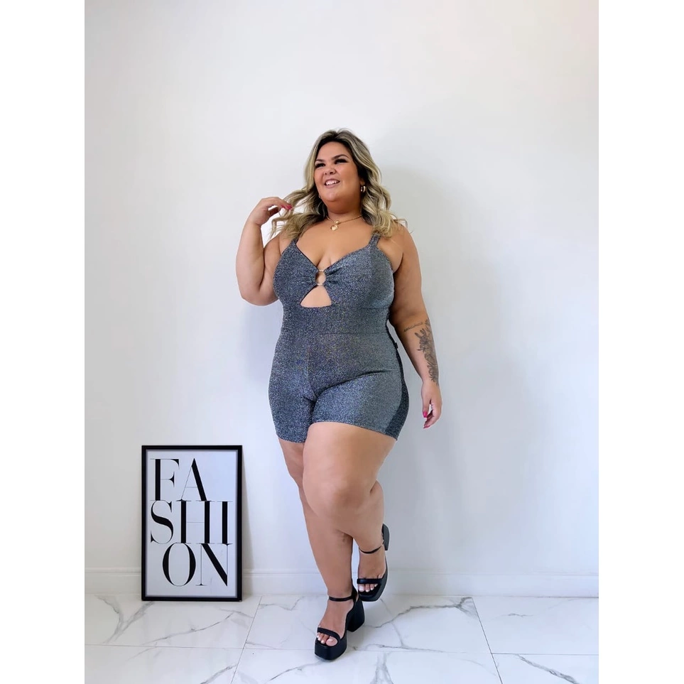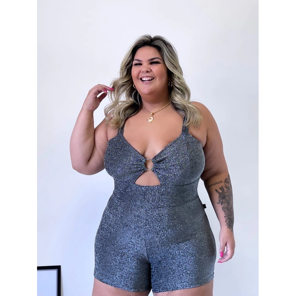 Macaquinho em Tecido Lurex com Abertura no Busto.
