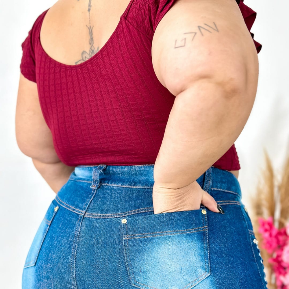 Este cropped é perfeito para quem busca estilo e conforto. Com mangas de babado duplo, ele adiciona um toque feminino e moderno ao seu look. O tecido Malha Bubléproporciona elasticidade e caimento perfeito.