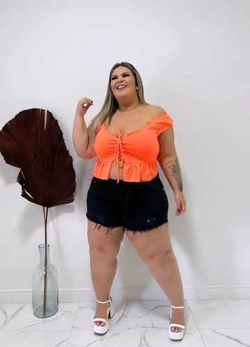 CROPPED NEON PLUS SIZEA MODELO VESTE O TAMANHO MMEDIDASM - Busto 112 a 121 cmG - Busto 122 a 133 cmGG - Busto 134 a 145 cm