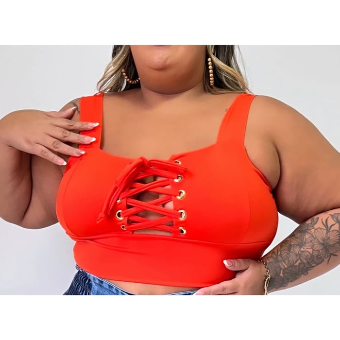 Cropped Plus Size Cruzado Tiras e Ilhós