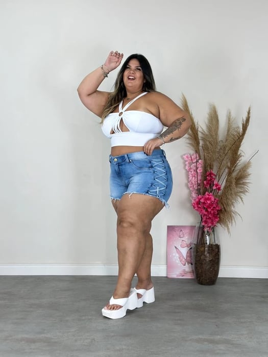 Short Jeans Plus Size Marmorizada Ihois e Cadarços Laterais