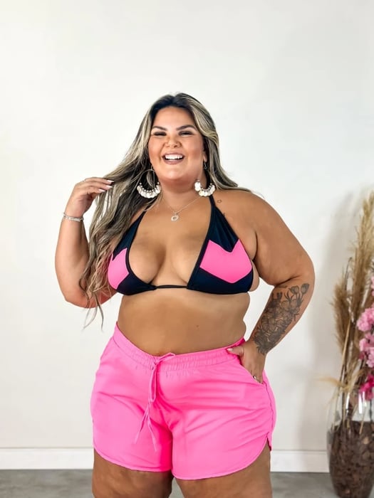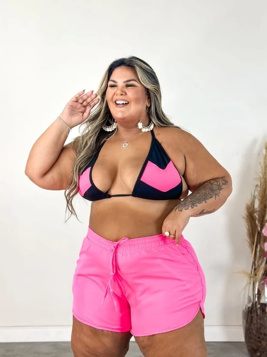 Dica de Estilo:Combine o short de microfibra plus size com um biquíni ou maiô colorido e um chapéu de praia para um look descontraído e elegante durante suas férias à beira-mar!