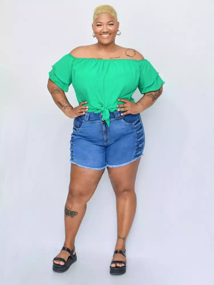 Apresentamos nossa Bermuda Meia Coxa, perfeita para quem busca estilo e conforto! Com detalhes na lavagem Stone Sky, essa peça traz um toque moderno e despojado ao seu guarda-roupa. Disponível nos tamanhos 48 ao 62, é ideal para todos os tipos de corpo. Na foto, a modelo veste o tamanho 52, mostrando como a bermuda se ajusta perfeitamente.